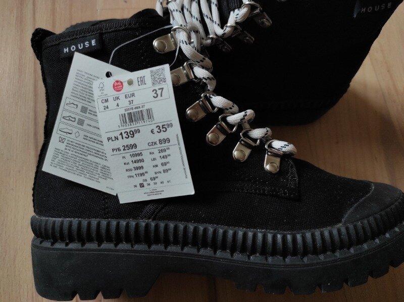Розмір 37 (устілка від краю до краю 24см). Матеріал верху і всередині щільний коттон. Носок захищений, тракторна підошва. Матеріал підошви: натуральний каучук.