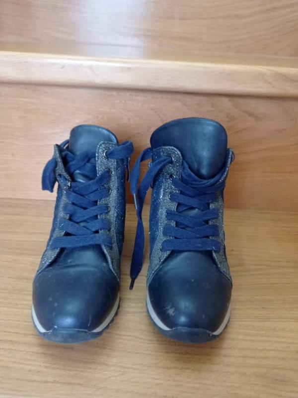 Хороші,практичні ботінки для дівчинки на шнурівках,з боку замочок трішки утеплені розмір 34.