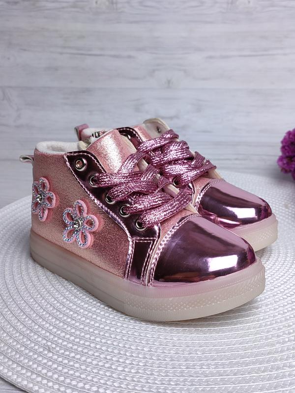 Демисезонные детские хайтопы ботинки для девочек с диодами в подошве