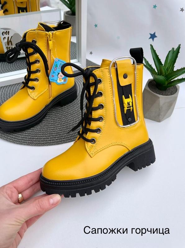 ✔ Демісезонні високі гірчичні чобітки зі шнурівкою спереду. Весняно - осіннє - утеплені плюшем. Застібка - збоку змійка ✔ Розміри: Замір по підошві, т до устілка не знімна! Орієнтовно устілка-2-2.5 см! 27- 20,5 28- 21,**********,**********,5 ✔ Ціна: 600 грн