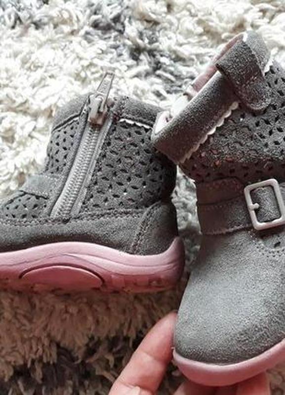Дуже гарні та стильні черевички! Марка Stride Rite відрізняється дуже гарним якістю дитячого взуття. Купувала на американському сайті, ця марка з дорогих, якість відмінна, замш натуральний. Були у нас на вихід, стан відмінний. Розмір 23, устілка 14.5 див.