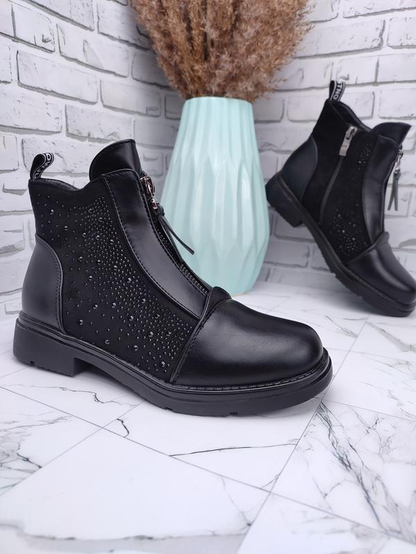 💎Стильні черевички для дівчат💎 Заміри розміру: р. 36 - 23 см ✔️Є нюанс, розмір на знижці (фото №2, є дод. фото) через пошкоджену поверхню носочка лівого черевичка при транспортуванні товару постачальником. Вартість максимально знижена ❗ Верх: еко-шкіра і замша, декоровані стразами💎 Всередині: мікрофібра