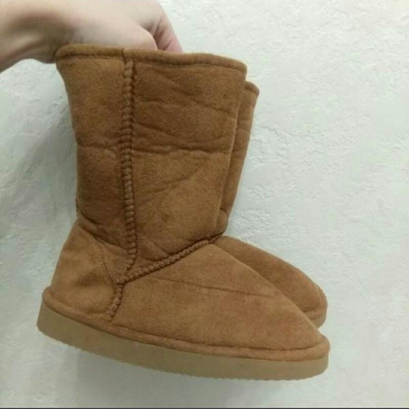 Тепленькие сапоги угги выполнены из искусственных материалов. Мех имеет густую набивку. Очень легкие по весу. Можно также носить в доме,дет прохладно. Высота сапожка 21 см. Длина по подошве 22 см. Внутри около 19.5 см. Ориентируйтесь на замеры, пожалуйста. Новые без бирки.