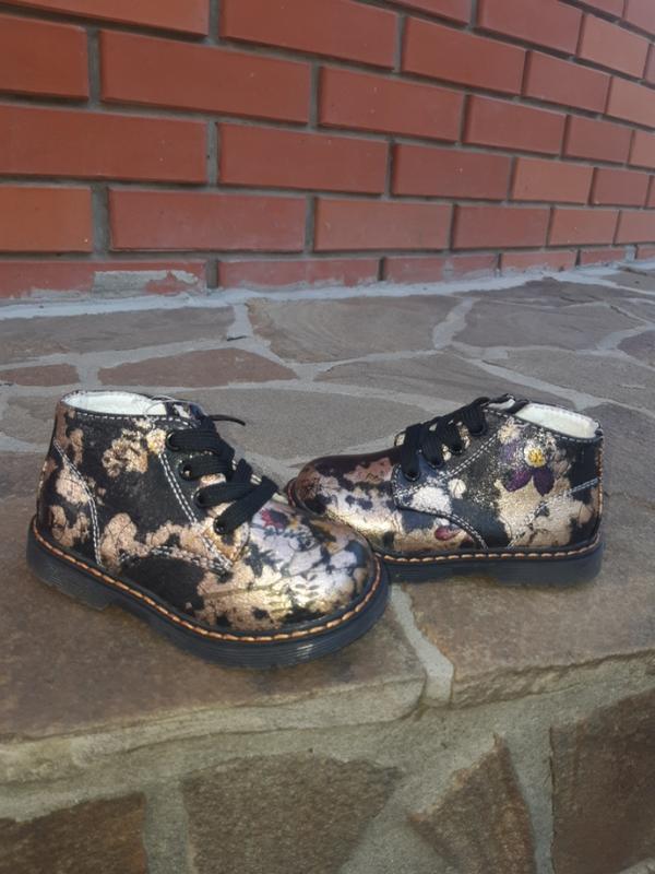 Очень крутые и стильные демисезонные ботинки для девчушки. Качество просто потрясающее. От натуральной кожи не отличить! Изготовлены из эко кожи высочайшего качества! Подошва из полиуретана. Прошиты. Кожаная ортопедическая стелька. Застегиваются на молнию.