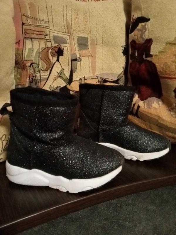 Без дефектів, сліди користування - на підошві з середини є потемніння, неможемо відмити. На останньому фото указано. Висота 11 см, устілка 18 см, всередині на хутрі.