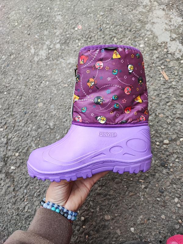 Дитячі високі калоші на дівчинку з змійкою до верху. Підійдуть для ігор в снігу до -15°С. Дуже легенькі та теплі. Розміри: 32-36 32 - 20 см ✅ 34 - 21 см✅ 36 - 22 см✅ Матеріал верху: ЄВА Матеріал в середині: хутро + фетрова устілка Країна виробник: Україна 🇺🇦