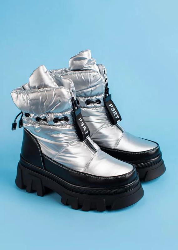 Колір - срібло Материл верху - штучна шкіра, поліестер Утеплювач - хутро Підошва - ПВХ Застібка - змійка Дод. інформація - Висота підошви - 4см, висота сапога - 20 см Розмірна сітка: 32-37 розмір Заміри по устилці: 32 розмір 20,5 см 33 розмір 21 см 34 розмір 21,5 см 35 розмір 22 см 36 розмір 22,5 см 37 розмір 23,5 см