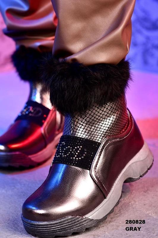 Зимние детские сапоги на девочку. Сверху эко-кожа, внутри искусственный мех. Легкие, теплые, удобные. Есть мембрана предотвращающая попадание снега в замок. Цвет: серый глянец. Высота подошвы 2см, пятка 3см. Размер 32 (стелька 21см) Размер 33 ( стелька 21,5см) Размер 34 (стелька 22см) Размер 37 (стелька 24см)