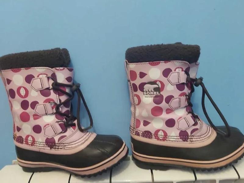 Водонепрониклі чоботи з рожевої та коричневої шкіри з гумовою підкладкою 33р. Знімний внутрішній чобіт із фетру, водонепроникна гумова оболонка з підошвою "ялинка". Б.у. в гарному стані, недоліки показала на фото. Чобітки дуже теплі, ніжки завжди були сухі.