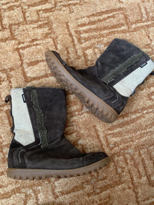Дитячі чобітки, є дефекти (не великі затертості замші,видно на фото) більше дефектів немає, теплі всередині та зручні