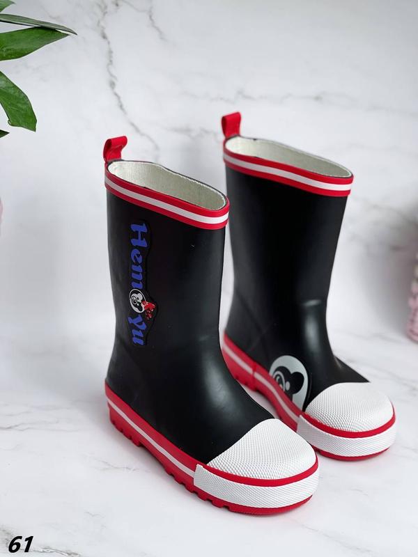 Код 61 Гумові чобітки Матеріал гума Колір чорний Висота від п'яти 18 см Висота підошви 2 см Розмірна сітка: 26 - 16,5 см 27 - 17,0 см 28 - 18,0 см 29 - 18,5 см