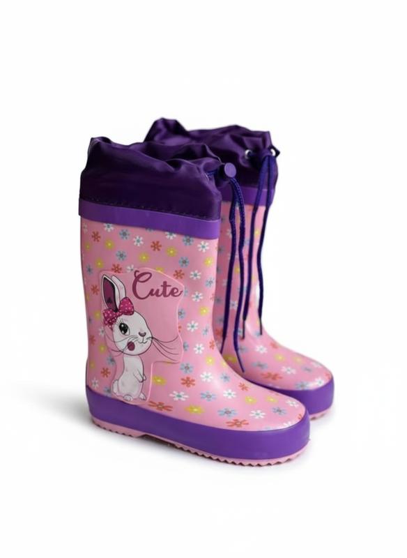 Код 55 Гумові чобітки Всередині фліс Матеріал гума Колір рожевий + бузковий Висота від п'яти 19,5 см Висота підошви 1,5 см Розмірна сітка: 21 - 13,5 см 22 - 14,0 см 23 - 15,0 см 24 - 15,5 см