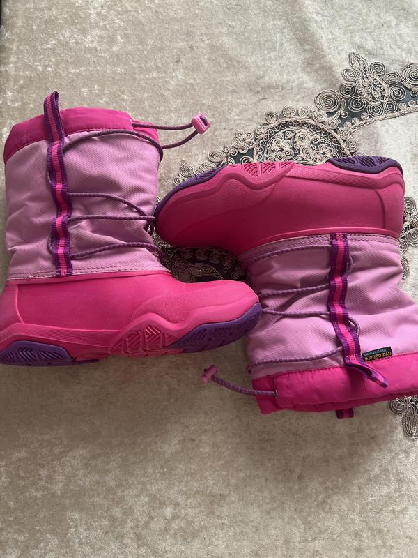 Очень красивые и комфортные сапоги от crocs. Без каких-либо дефектов, выглядят прекрасно. Очень теплые. На одно из вискожек есть одна точка, слева, когда рисовала фото. На внешний вид вообще не влияет. Стелька 21 см