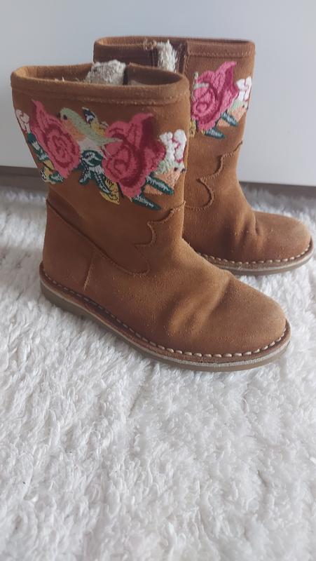 Чобітки Zara, натуральна замша, утеплені штучним хутром, з вишивкою, не холодна зима або демісезон. Стан ідеальний. Блискавки робочі