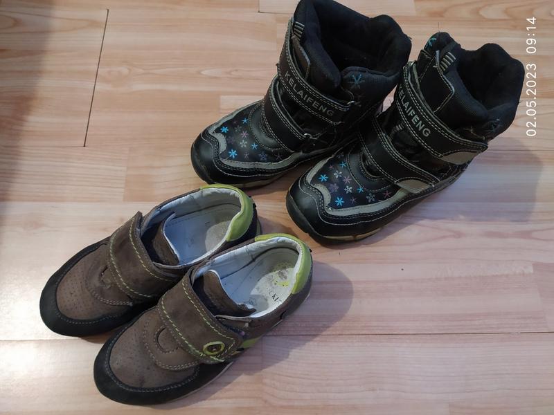 Продам сапожечки і кросівочки в хорошому стані. Сапожечки зимові Kelaifeng розмір 30, устілка 19 см., не протікають, є незначні сліди носіння, на фото старалась показати зовнішній вигляд, скритих дефектів немає. Кросівочки Lasocki розмір 29, устілка 19 см., не протікають, немає на липучці кнопочки, яка не виконує ніякої функції, а тільки як прикраса, трохи стерті носки, підійдуть для ігор на майданчику і у дворі. Обміну і повернення немає задавайте питання всім відповім. Оплата на картку Приватбанку. Доставка УП,НП оплата при отриманні.