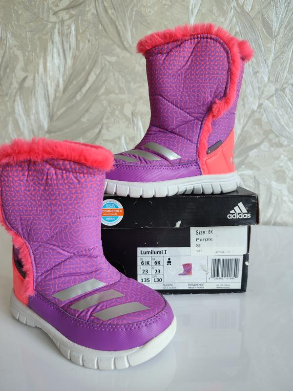 Дитячі зимові чоботи на дівчинку. Фірма Adidas. Усередині дуже м'які. Заміри. Довжина підошви 17 см.