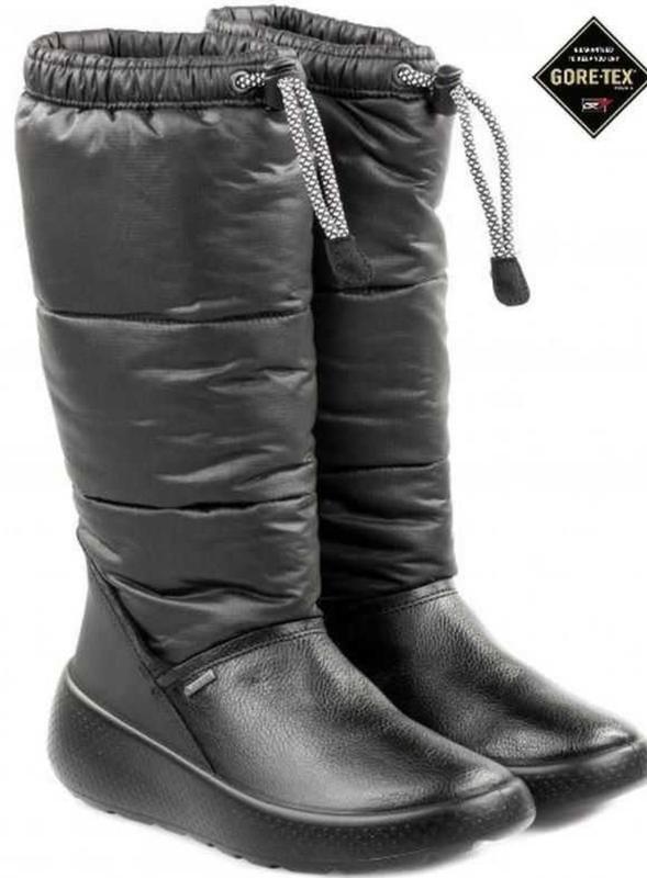 Зимние сапоги ecco Roskiuk с технологией goretex.Верх из натуральной кожи и плащевки,водонепроницаемые.Универсальная модель, подходят и под платье,й под лыжный комбинезон.Очень удобные.Стелька к загибу 19.2 см,полная длина 20 см.Размер 31. 1200 грн