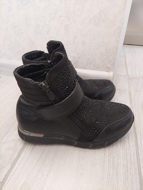 стан дуже гарний. всі стрази на місці. липучки як нові, все працює. утеплені. чудовий варіант на осінь-весну. розмір 33. довжина устілки 20,5.
