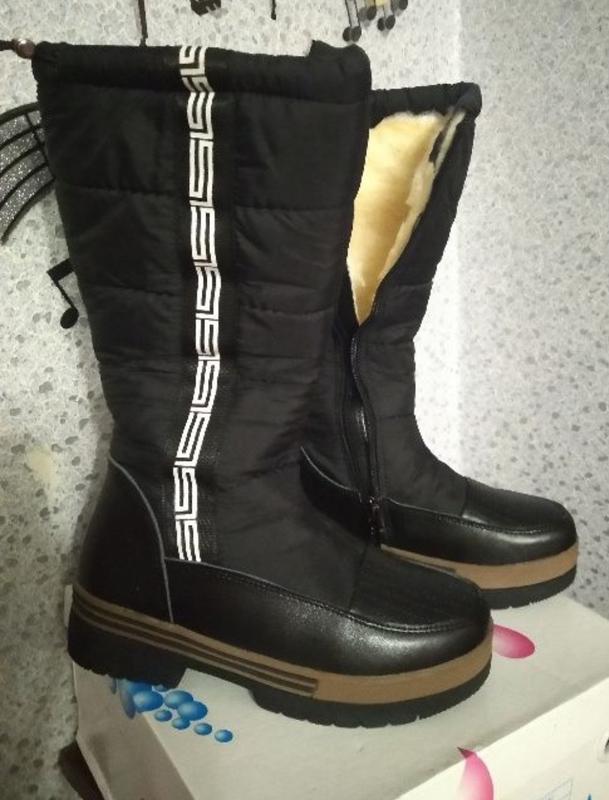 Чоботи теплі,зимові,на цигейці.Є недолік - розірвався шов між чоботом і блискавкою(фото 4).Розмір 33.Устілка +/-20,5-20,6см