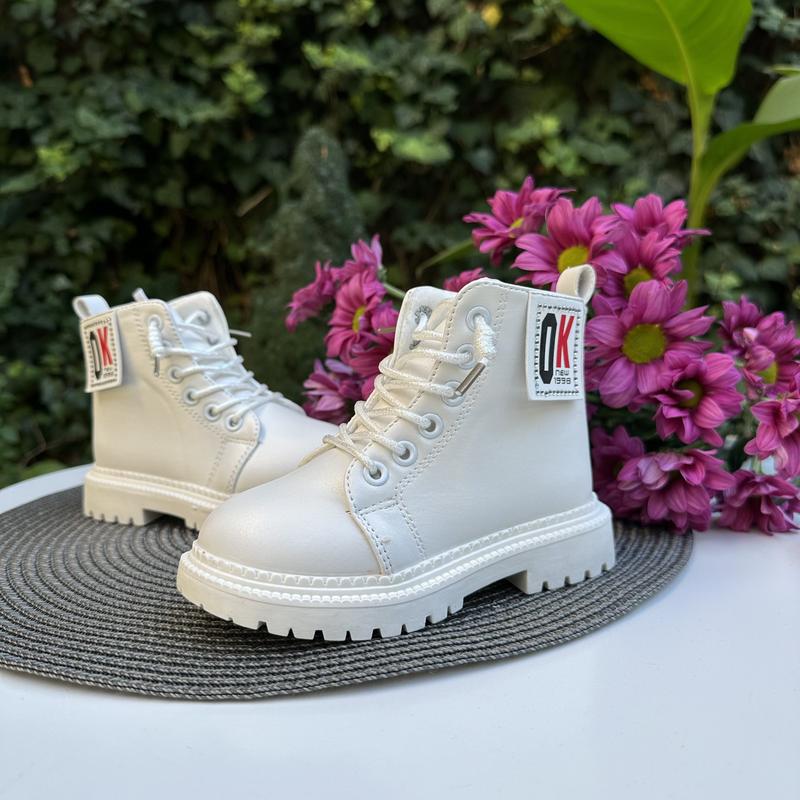 Стильні демісезонні черевики для справжньої модниці! Відмінна якість! Утеплені флісом. Устілка- фліс. Застібка- збоку змійка, імітація шнурків. Розміри: 26 – 15,5 27 – 16,0 28 – 16,5 29 – 17,0 30 – 17,5 31 – 18,5