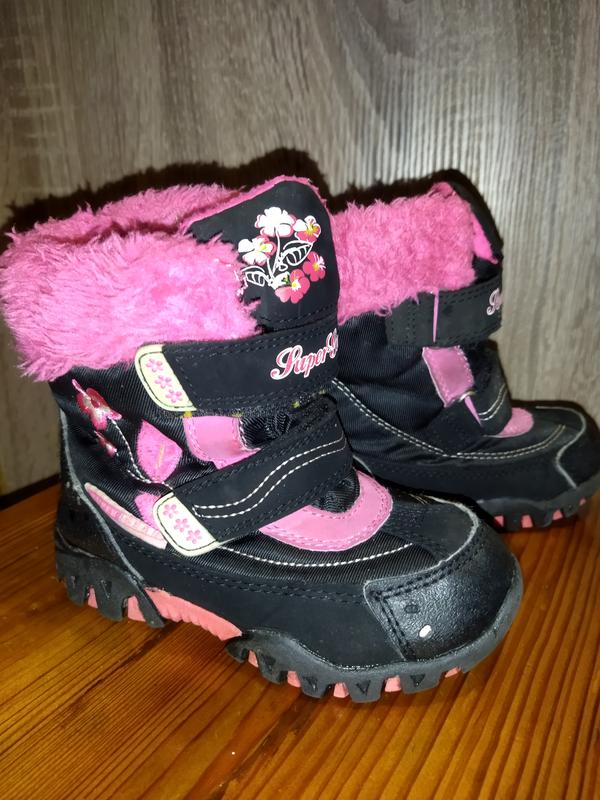 Зимові термо сапожки для дівчинки. розмір 26 , дуже в гарному стані . за потреби надішлю додаткові фото та заміри. дякую за розуміння