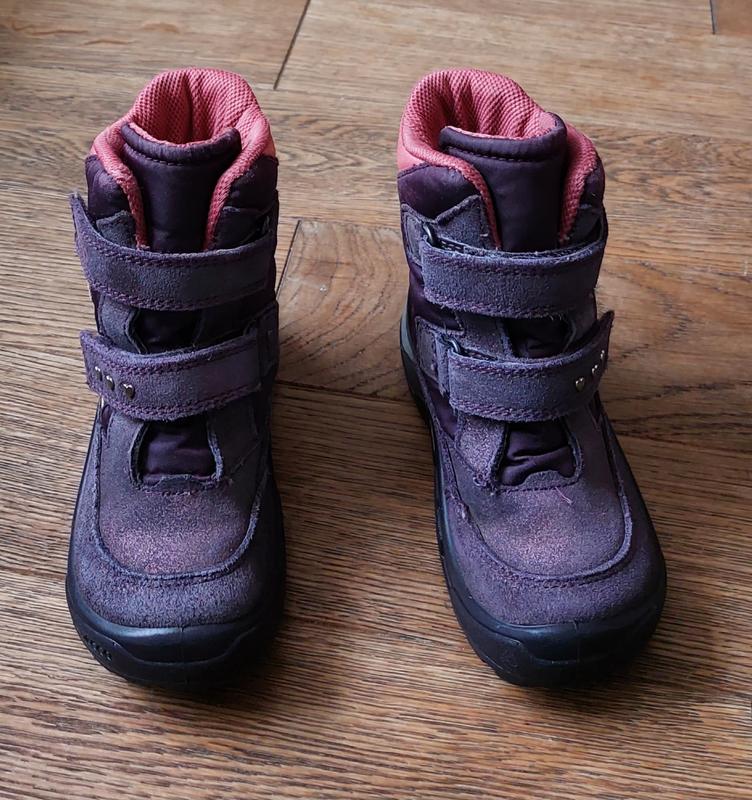 Зимние сапоги Ессо размер 25, стелька съемная шерсть 15,5см. В отличном состоянии. На двух крепких липучках. Цвет - бордовый с напылением. Очень симпатичная моделька, тёплая, не промокают, мембрана Gore-tex. Все целое,без нюансов.