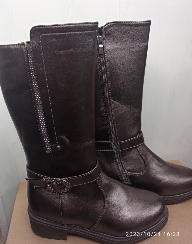 гарненькі чобітки для дівчаток . Матеріал верха якісна штучна шкіра, всередині натуральне хутро. дуже теплі, та гарно виглядають на ніжках. розмір 34 устілка 22 см розмір 36 устілка 23 см