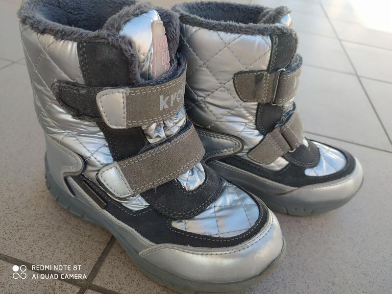 Дитячі зимові чобітки . У чобітках використовується мембрана PURATEX. Основне завдання цього матеріалу - захист від промокання, не пропускає ззовні вологу та водонепроникний. Усередині матеріал підкладки овчина , кожен чобіток фіксується на дві липучки. Розмір 31.