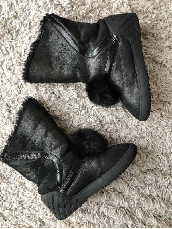 Чудові м'якенькі та теплесенькі чобітки на дівчинку. Одягаються легко та швидко! Носилися мало, тому в прекрасному стані. Верх натуральна шкіра, трохи ближчить. Устілка і внутрішня частина- натуральне хутро. Довжина по устільці~21 см