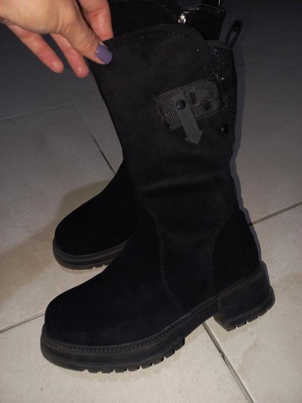 Нереально красивые, новые замшевые сапоги. В магазине клялись что замша натуральная, но она реально добротная. Брали в прошлом году за 1600, обуви всего лишь 1 раз и то в машине. Подошва слегка пыльная и идеальная. Следов носки на замше нет. Смотрятся очень красиво и дорого. Высокие. Высота сапога 21.5, каблучок 4 см. Очень удобные и теплющие. Единственный нюанс - на одной стороне отвалилась стрелочка (беда всех сапог)