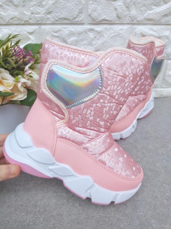 К.1325 👧Гарні дутікі Apawwa рожеві 28-35, верх плащівка вологовідштовхуюча, в середині щильне хутро, застібаються на ліпучку, товста підошва захистить від промерзання. 33р устілка 21см