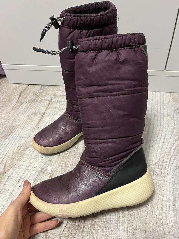 Чоботи Ecco Ukiuk Kids 33р. Зима. Верх-шкіра та мембрана Gore-Tex Мембрана Gore-Tex забезпечить повний захист від снігу, дощу та бруду, але при цьому збереже циркуляцію повітря, не втративши тепло всередині черевика. Підошва-поліуретан. Колір при різному освітленні різний - від фіолетового, до бордового. Температурний режим до -20С