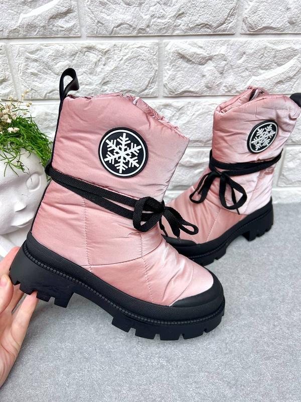 К.1333 👧Крута новинка цього сезону😍 дутіки які підійдуть і під спідниці і під штани, верх плащівка,в середині щильне хутро, товста підошва, захищений носок, регулюються замочком(шнурки прикраса), устілка приклеєна заміри +-2мм. 37р устілка 23см