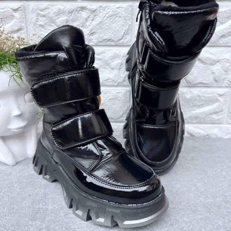 верх лакована еко-шкіра, товста підошва захистить від промерзання, в середині 60% натуральна овчина, регулюютьмя 2 ліпучками та замочком. 33р устілка 21,3см 34р устілка 22см 35р устілка 22,7см 36р устілка 23,3см 37р устілка 24см 38р устілка 24,5см