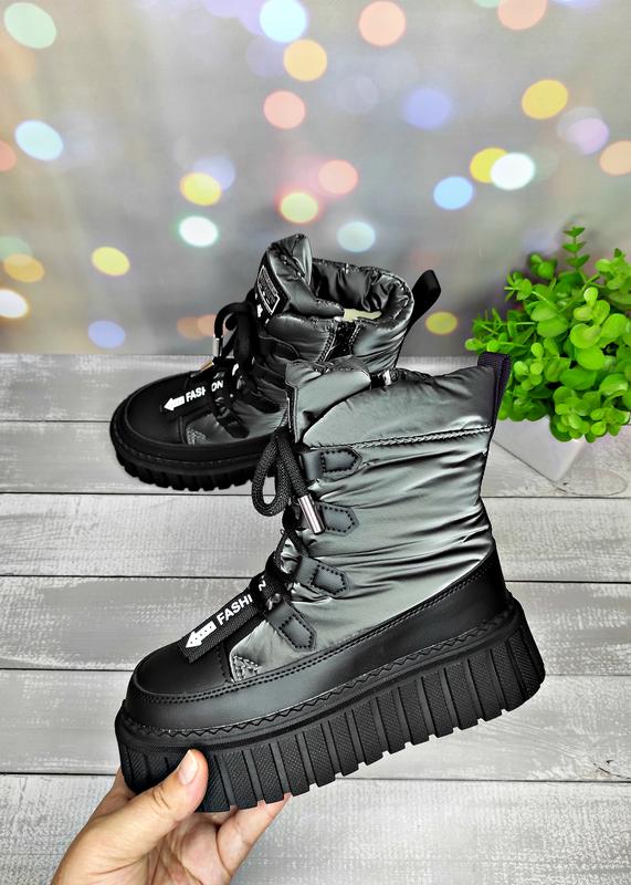 Зимові чоботи,дутіки р-р 35-22.5 см чорні з сірим тм jong golf