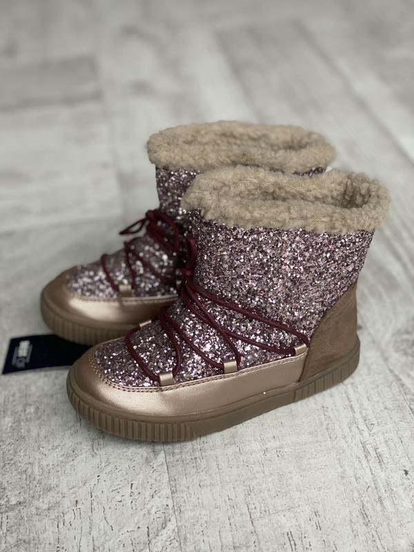 Чобітки луноходи прикрашені глітером французького бренда Kiabi. Матеріал верху — екошкіра, текстиль. Всередині утеплювач штучне хутро. Чобітки демісезонні, не зима! Чобітки доступні в розмірах 22,23. Заміри: *22р. - 14см; *23р. - 14,5см. Ціна чобіток 22 євро, продаю з чудовим знижком! ‼️Відсилання щодня🙌 🚛Доставка Новою поштою, кріпою. 💰 Оплата на карту Приватбанка, безпечна оплата. Дивіться й інші свої оголошення. Багато речей бренда Kiabi за доступними цінами. Кожен день додає товар. Записуйтеся, будьте в курсі новинок!
