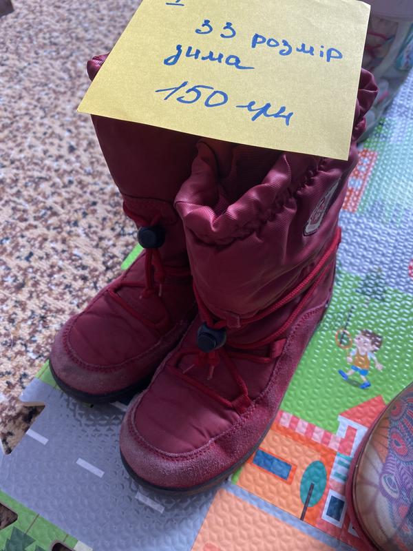 Пропоную великий вибір взуття дитячого зимового. 1 номер взуття зимове 33 розміру по устільці 21 см. Є потертості замші. Ціна 150 грн. Черкаси, с. Білозірʼя, м. Сміла можу підвезти поміряти ( за вашу доплату). Деталі за тел ********** Ірина.