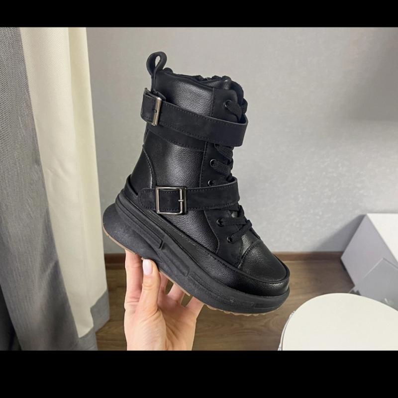 Ззовні якісна матова еко-шкіра Всередині хутро ( 60 % Є бокова застібка Легенькі та зручні 32 розмір 19,7 см ЕС