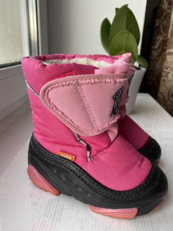 Польща. Так і пише на підошві. Розмір 22-23 В розмірній сітці на сайті пише, що довжина устілки - 14,7 см В гарному стані. Ціна нових близько тисячі гривень(дивіться на сайті) Дефект видно на фото - стерлася частина стрічки сірої, що світиться в темряві. Дуже теплі. Ідеальні для діток. Легенькі.