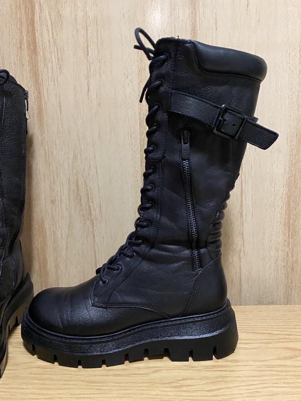 Фірмові дуже якісні, утеплені( термо) Регулюються шнуровкою, молнією. Дуже зручні. Холодна осінь- зима до -15. Розмір 37, довжина устілки 24 см