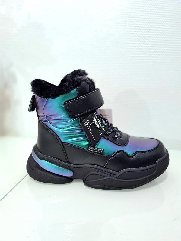 Верх - якісна екошкіра +водонепроникна плащівка 🔸Всередині -густе тепле хутро ( натуральна овчина 60%) 🔸Збоку є замочок 🔸Сумочка не знімається 🔸Легкі та зручні 🔸Дуже гарна якість ! 37 розмір - 24,0 см