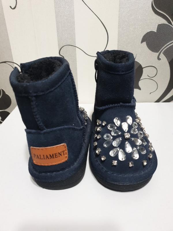Теплі натуральні уггі в стрази ( відсутній один камінчик є фото , можна докупити в магазині для рукоділля) , розмір 23 по устілці 14 см