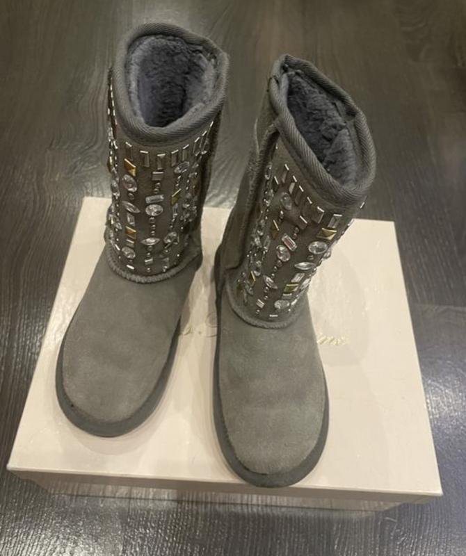 Угги теплые мех внутри натуральный камни сверкают цвет серый удобные
