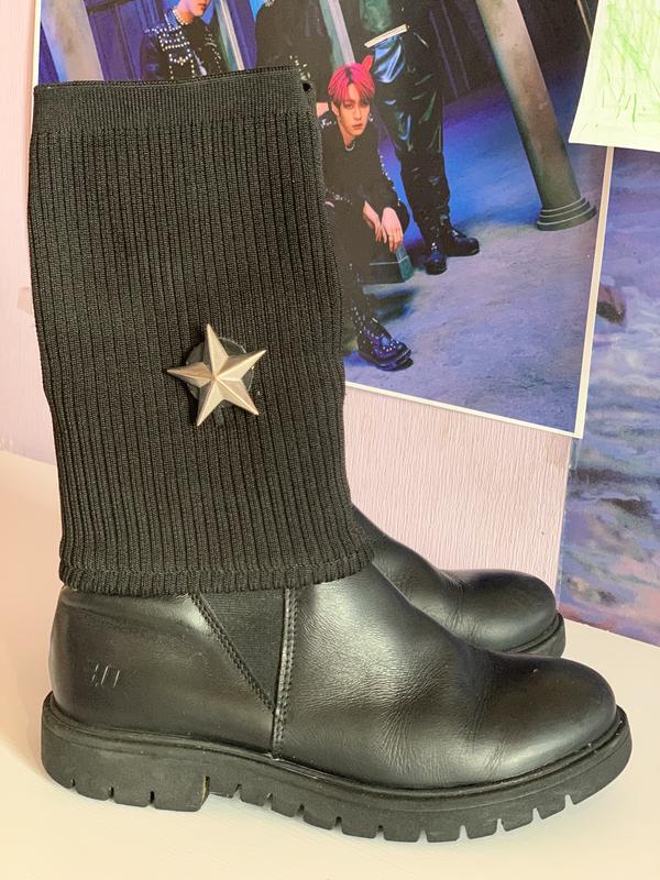 Сапоги просто мега крутые, состояние отличное, не промокают, качественные, натуральная кожа, Италия. Они идут ботинками, а сверху плотная резинка. Выглядят супер. Стелька 21 см