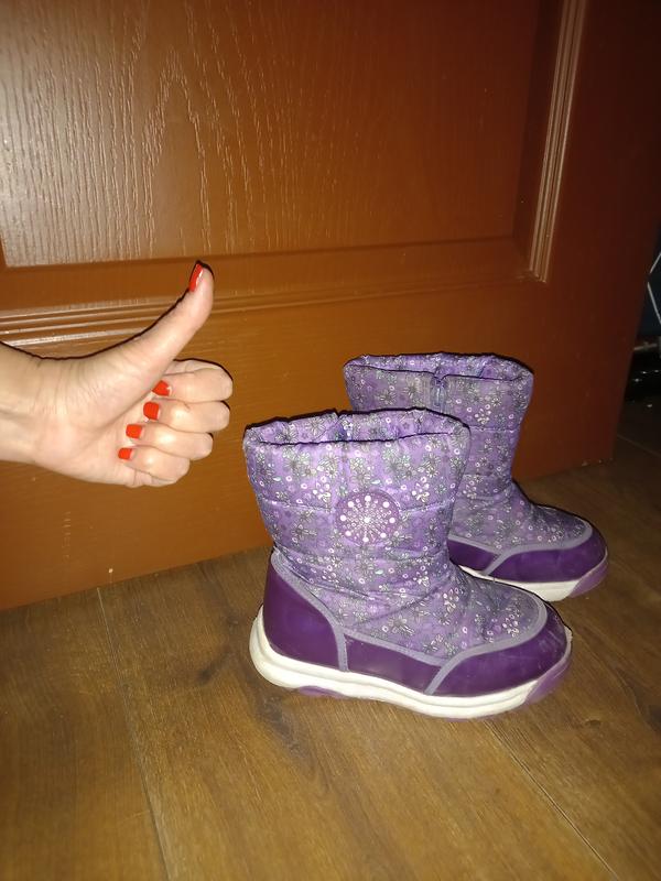 Сапоги детские,дутики.Размер 29,длина стельки 17 см.Есть не большие потёртости.В одном месте подклеять,подойдут на сухую погоду.Теплые,цвет сиреневый.