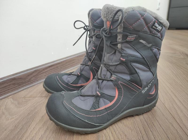 Тип взуття: Черевики Зимові чоботи/ботинки Salomon ART NO 381621 В дуже хорошому стані, в експлуатації були не довго. Розмір 38 (25 см. устілка). Зроблені по сучасним технологіям і матеріалам. Gore-Tex, waterproof. Легкі, зручні та дуже теплі. На останньому фото видно подряпину.
