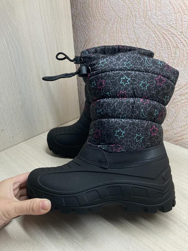 Продам зимние сапожки 32 размер на девочку. Фирма не указана, но привезены из заграницы. Состояние совершенно новых. Длина стельки ориентировано 20,5 см. Среднее очень пухло. Очень теплые и не тяжелые. Удобные и красиво выдерживают влагу.