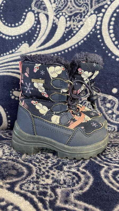 Супер теплі, зручні, водовіштовхуючі зимові чобітки Розмір 22 Мембрана KING-TEX Випробувані і снігом, і водою Всередині хутро Затягуються резиночками з фіксатором Стан 4,5/5 Є й інше взуття та одяг в наявності, заходьте на сторінку та обирайте. При замовленні декількох речей зроблю знижку