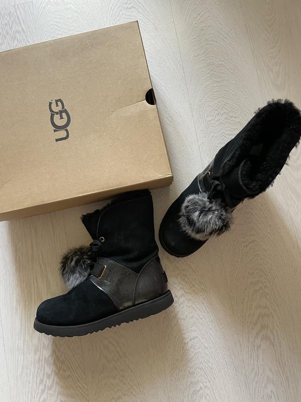 Зимові Ugg, дуже зручні, помпони відстібаються, взуватися легко, хутро дуже тепле. Замша з водовідштовхуваючлю пропіткою. Ніжки вашої дитини будуть в теплі до -30 С .Повне пакувпння.