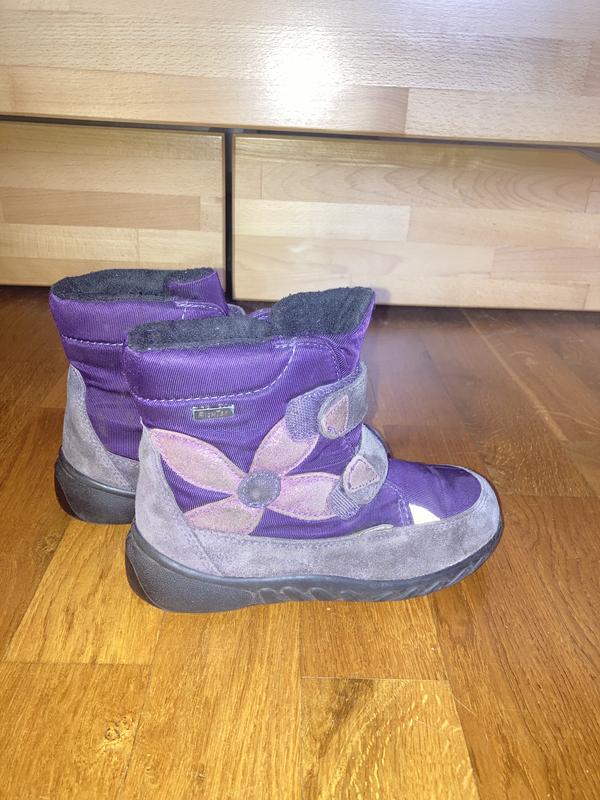 Чоботи підійдуть як на осінь/весну, так і на суху зиму. Мають замшеві вставки та водостійку тканину. Дуже теплі. Є нюанси (див. фото 4 та 5). На фото 4 видно маленьку лінію на правому чоботі, майже непомітно. За додатковими фото та замірами - пишіть